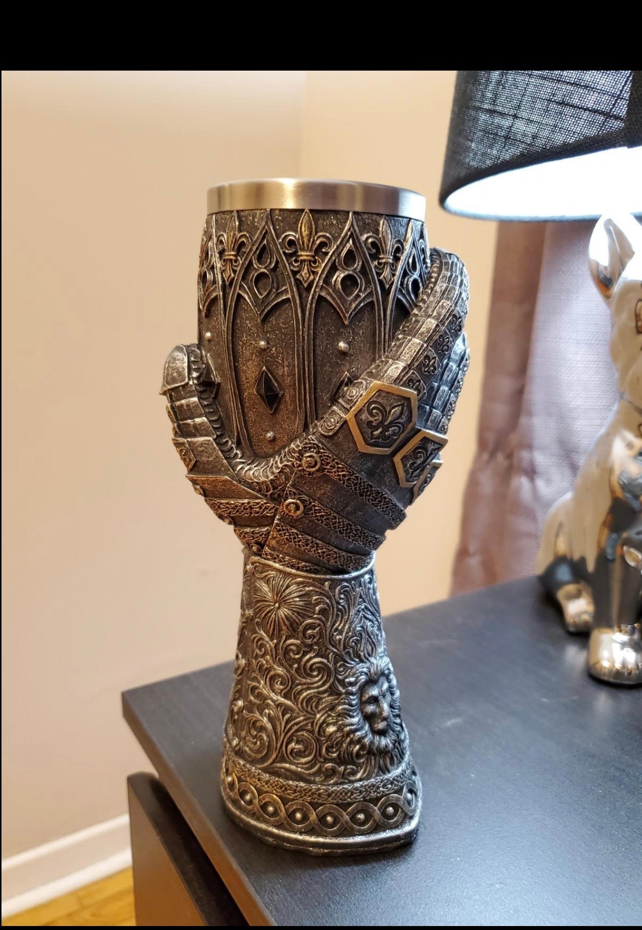 This goblet combines high-quality resin with a removable stainless steel insert for easy cleaning. It’s medieval design and intricate detailing makes it a perfect gift or collectible for dark fantasy enthusiasts.